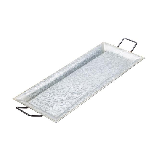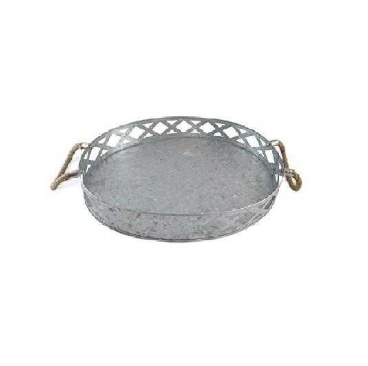 Recién llegado, bandeja de servicio ovalada galvanizada rústica, placa de Metal de tamaño personalizado con asas, bandeja de servicio decorativa a la venta
