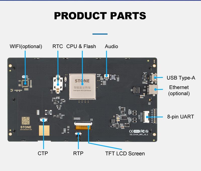 Nueva llegada STONE 10,1 pulgadas 1024xRGBx600 IPS pantalla capacitiva Panel táctil pantalla Multimedia para Raspberry Pi