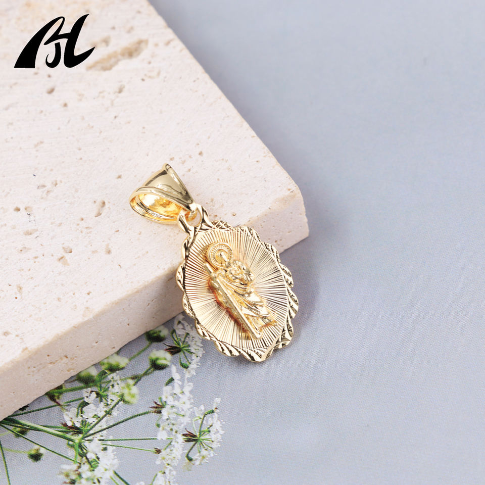 Nuevo Colgante de San Judas, Amuleto Religioso de la Virgen de Guadalupe en Oro, Chapado en Oro de 18K, Piedra Principal de Diamante, Cristiano