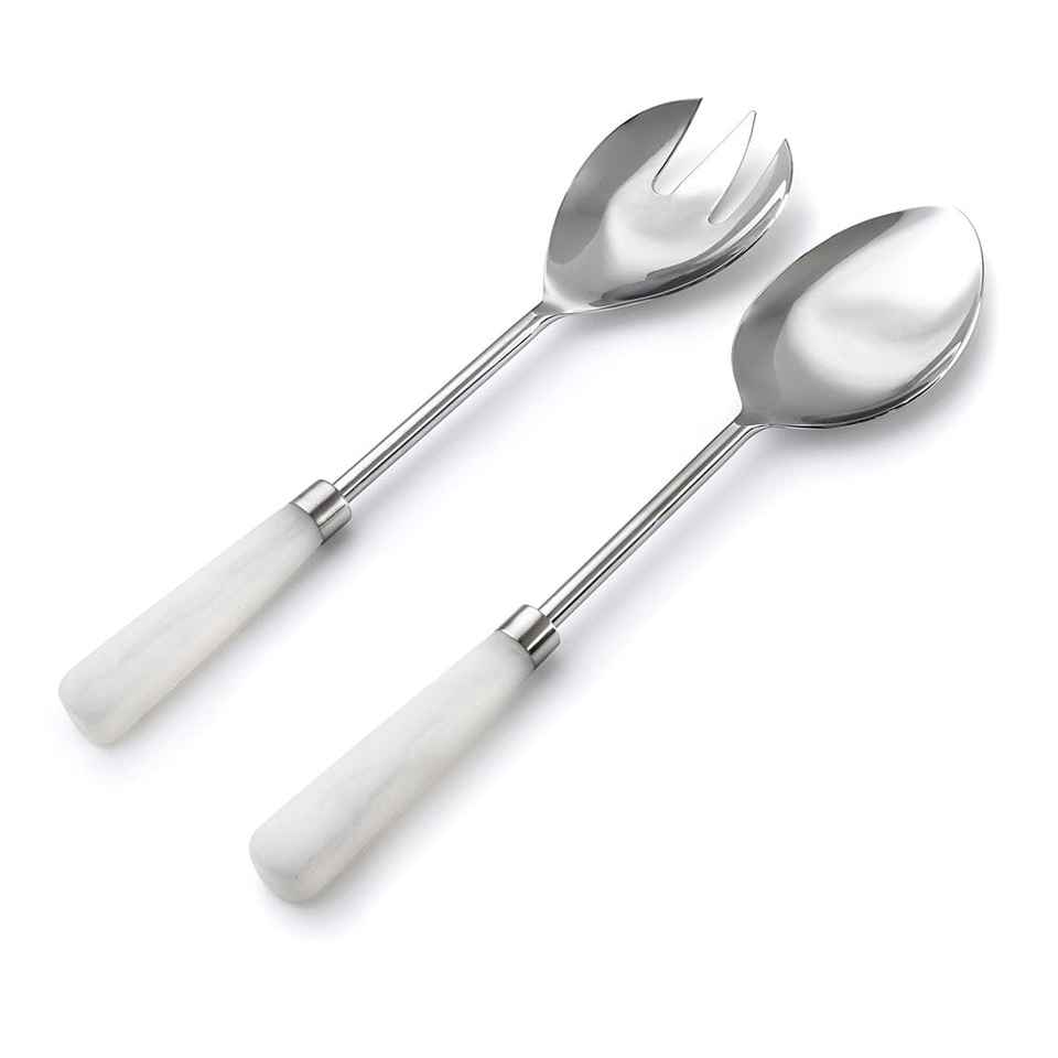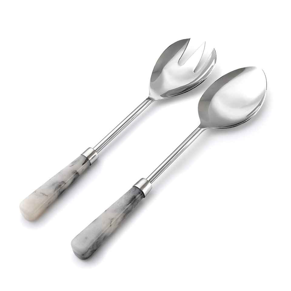 Nuevo Juego de Cubiertos con Mango de Resina, Servidor de Ensalada Chapado en Oro, Juego de Cubiertos de Acero Inoxidable, Juego de Cubiertos de la Familia Real