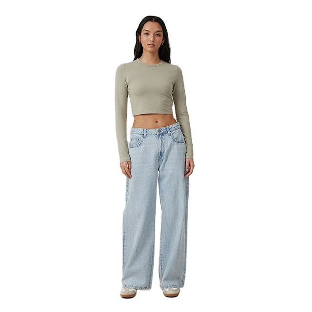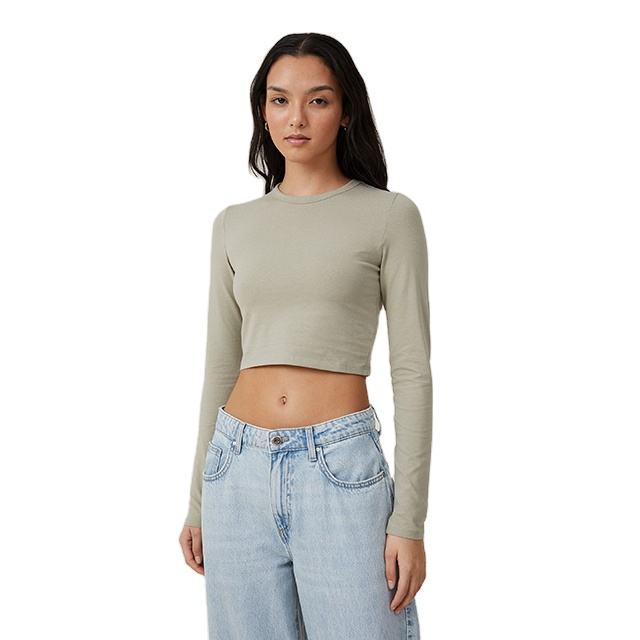 Nuevo Diseño de Camiseta Corta de Manga Larga para Mujer, Estilo Vintage, Teñido Liso, Elástica, Ligera, 180 g/m², Corte Ajustado