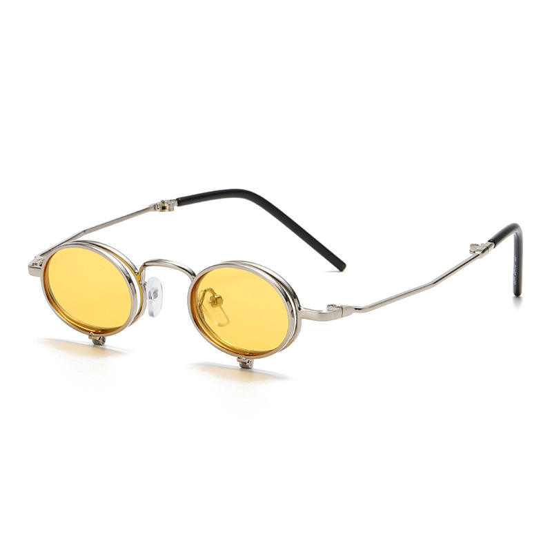 Nuevas Gafas de Sol Plegables Estilo Steampunk con Marco Metálico Ovalado Pequeño