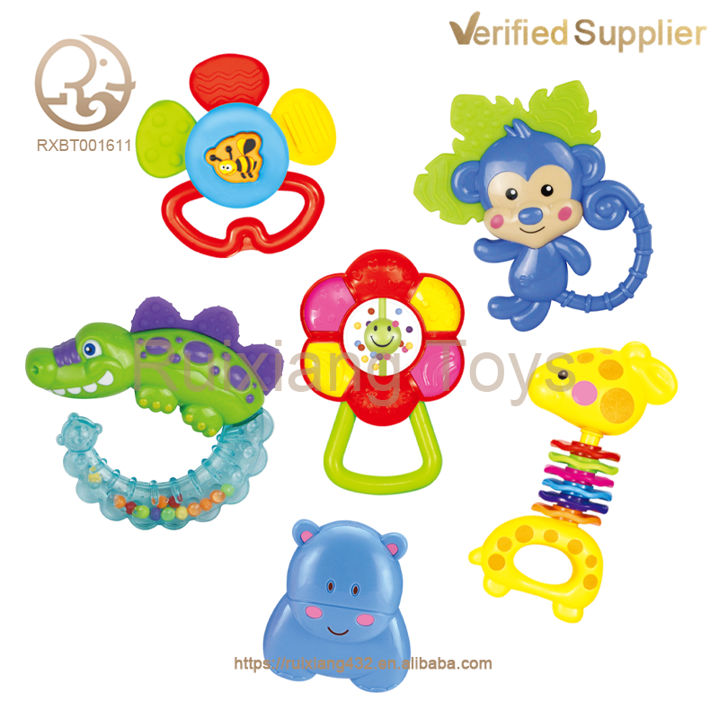 Mordedor infantil multianimal de silicona suave para bebé, juego de sonajero para bebé, sonajero educativo