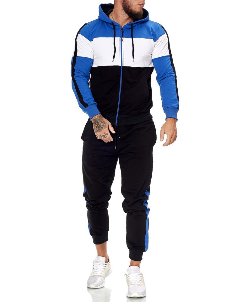 Nueva Colección Primavera Conjunto Deportivo para Hombre con Sudadera con Capucha y Cremallera Completa, Pantalones Jogger y Diseño de Bloques de Color