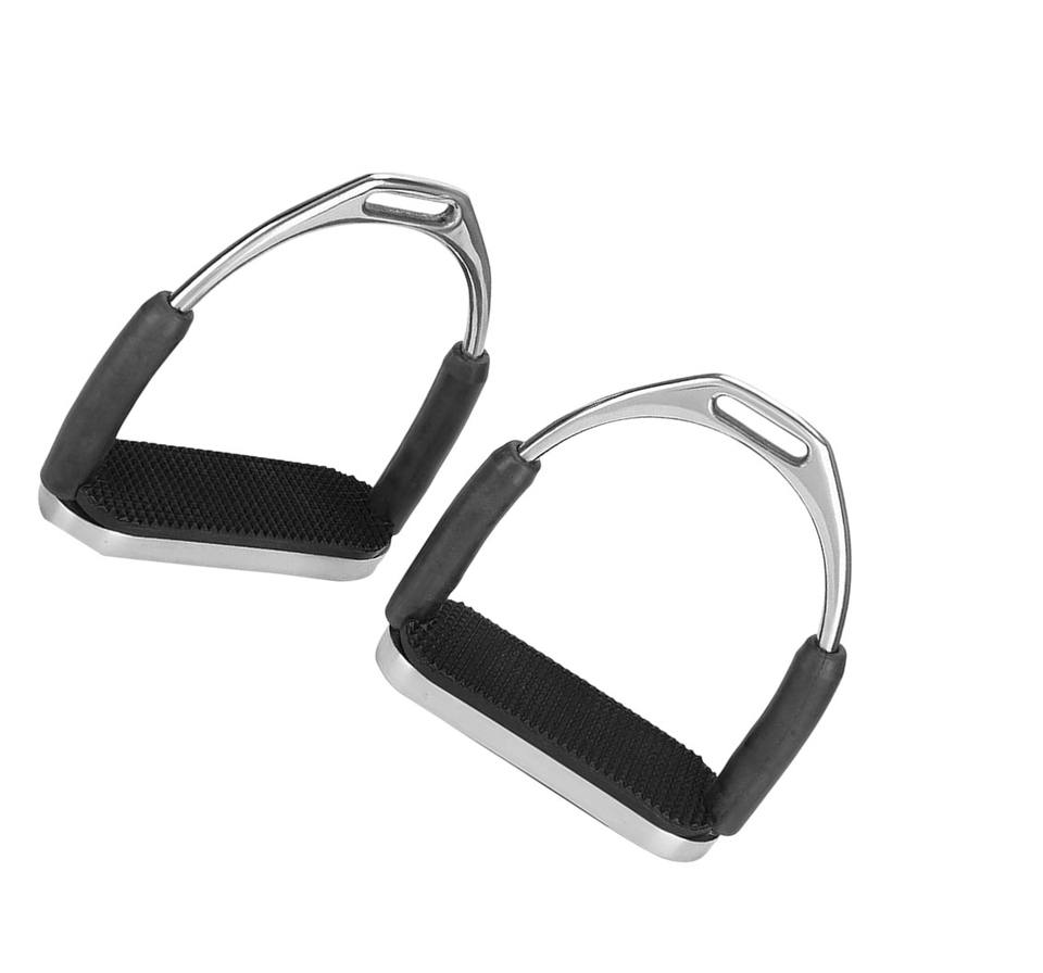 Recién llegado, estribos para montar a caballo de acero inoxidable, agarre de seguridad ajustable, engranaje de tachuela duradero ligero de fábrica