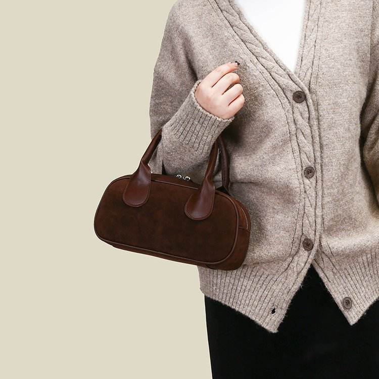 Nueva llegada gamuza esmerilado Boston bolso mujer 2025 nuevo solo hombro bandolera almohada bolso Otoño e Invierno Retro bolso de lujo