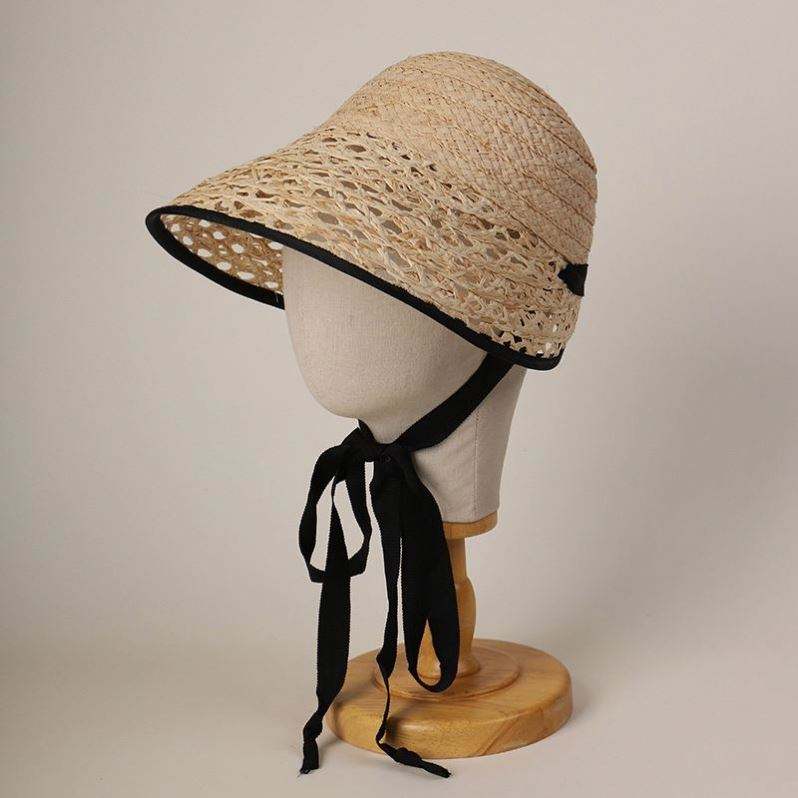 Nuevo Sombrero de Paja Rafia de Verano para Mujer, Estilo Lolita, con Visera Hueca y Cordones de Encaje, Ideal para Pesca y Viajes
