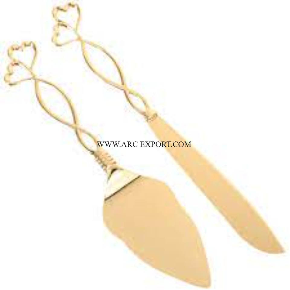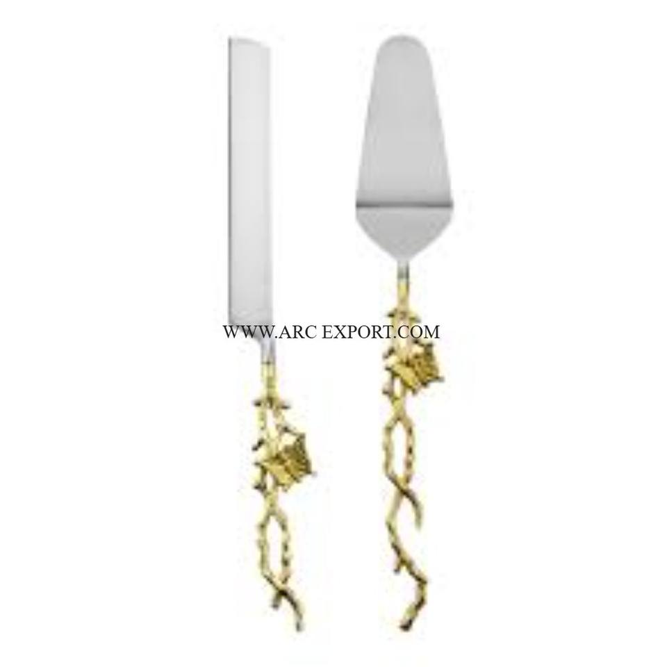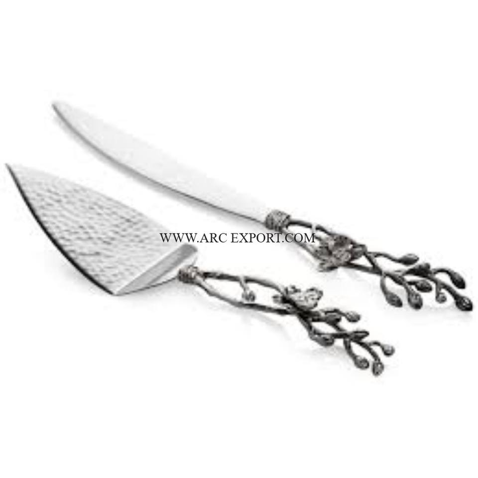 Recién llegado, servidor de pastel decorativo de mesa y cuchillos, Juego de 2 Diseño martillado, servidor de pastel pulido con espejo de Metal de acero inoxidable