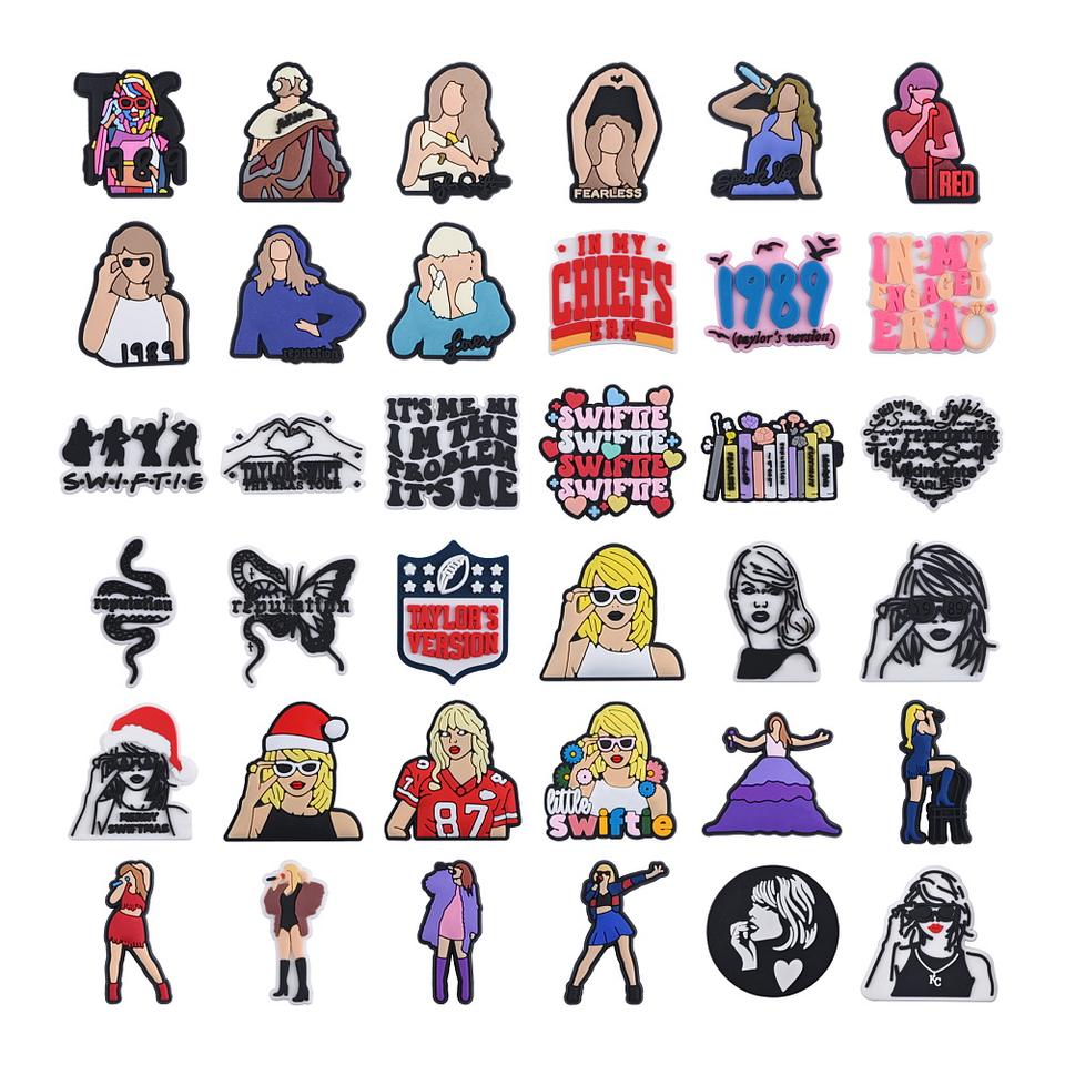 Nueva llegada Taylor cantante Swift zapato encantos para zapatos accesorios venta al por mayor PVC zapato decoración encantos para zuecos sandalia