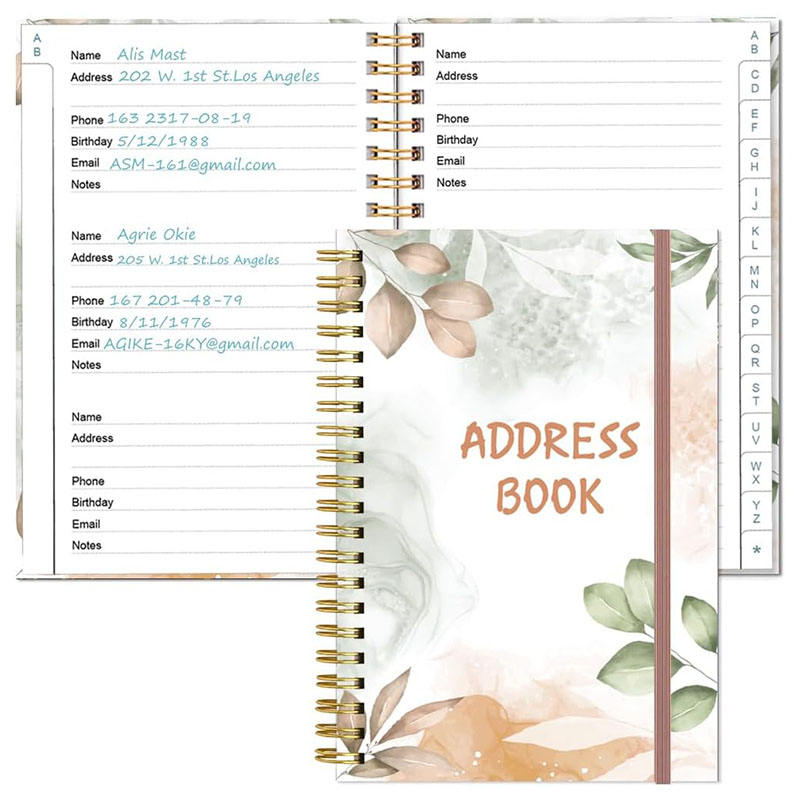 Recién llegado, planificador telefónico, pestañas alfabéticas personalizadas, espiral, contactos de correo electrónico, diario, contraseña, dirección, cuaderno
