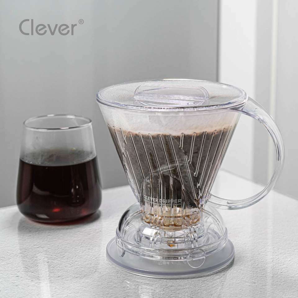 Clever Dripper Mr. Clever - Suministros B2B Ecológicos y Reutilizables para Tostadores de Café, Gris Translúcido, Grado Alimenticio, Novedad