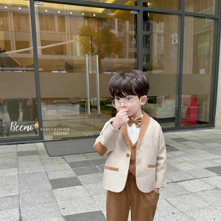 Recién llegado, conjunto de trajes de chico de 5 piezas de tendencia para bebés, ropa Formal de Otoño Invierno al por mayor para el evento más popular de Vietnam