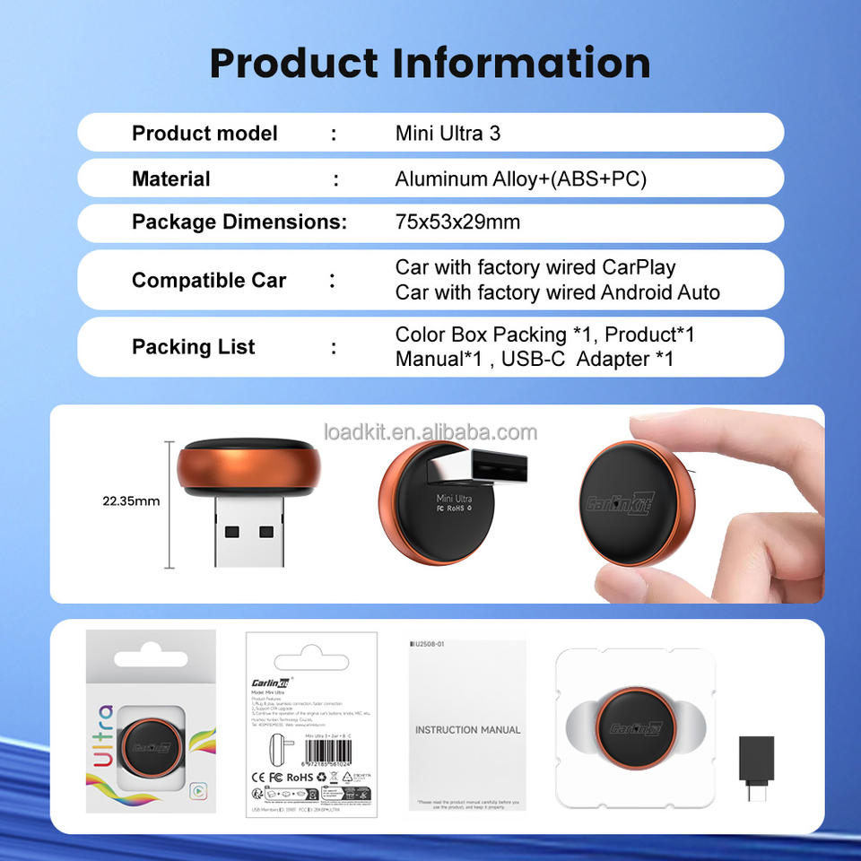 Compatible car model:All car with OEM factory wired carplay or wired android auto