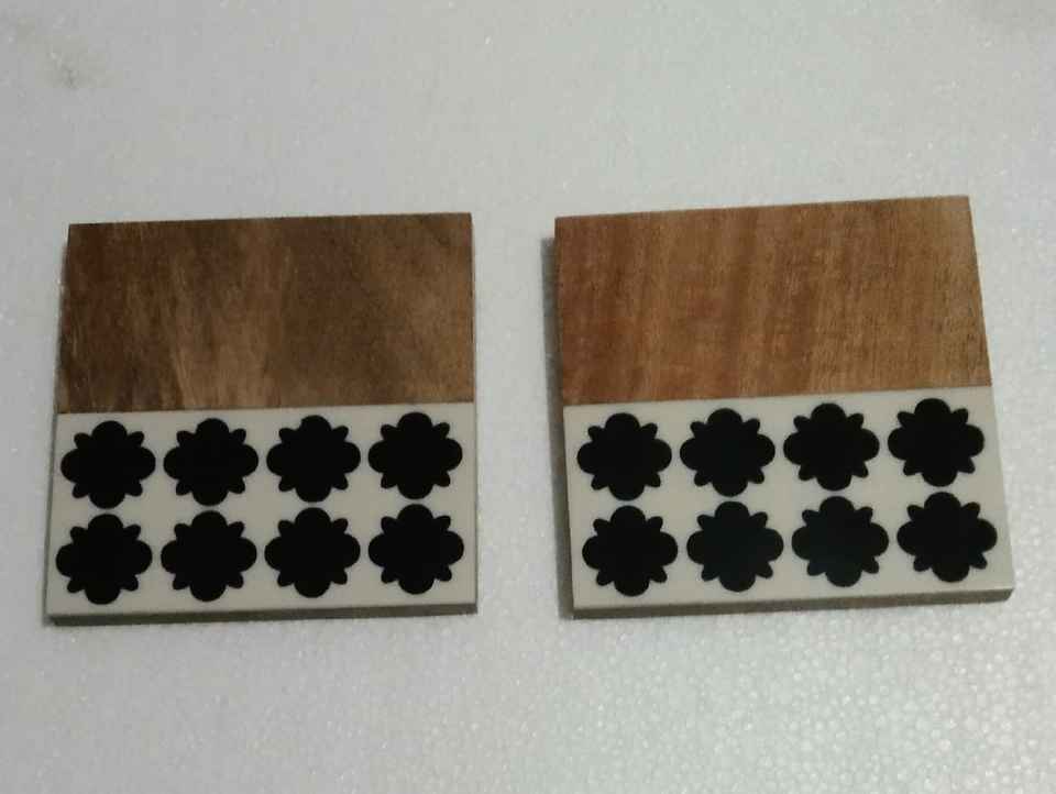 Nuevas Posavasos Cuadradas de Madera de Acacia Ecológicas con Resina Epoxi, Diseño de Rayas, Madera Natural para Bebidas