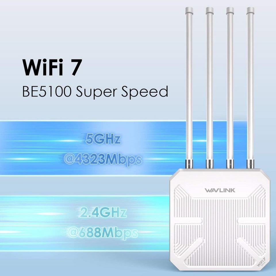 Nuevo Punto de Acceso Exterior WL-WN573HBE2 de Doble Banda y Alta Velocidad 2.5G WAN/LAN BE5100 con Antena Wavlink WiFi 7 Mesh