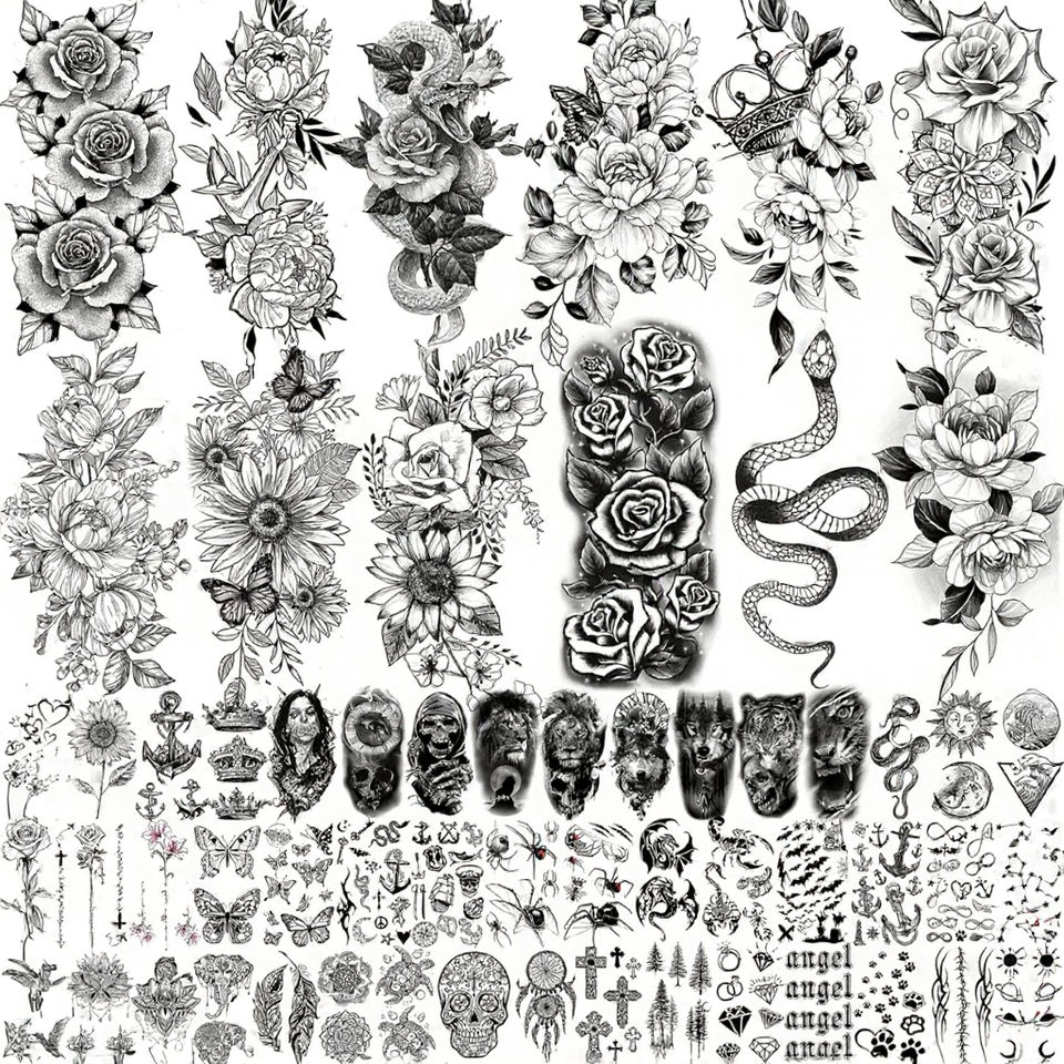 Nuevo Tatuaje Temporal de Papel Impermeable con Diseños de Rosas, Mariposas y Animales, Adhesivo de Tatuaje Sexy para Mujeres Adultas