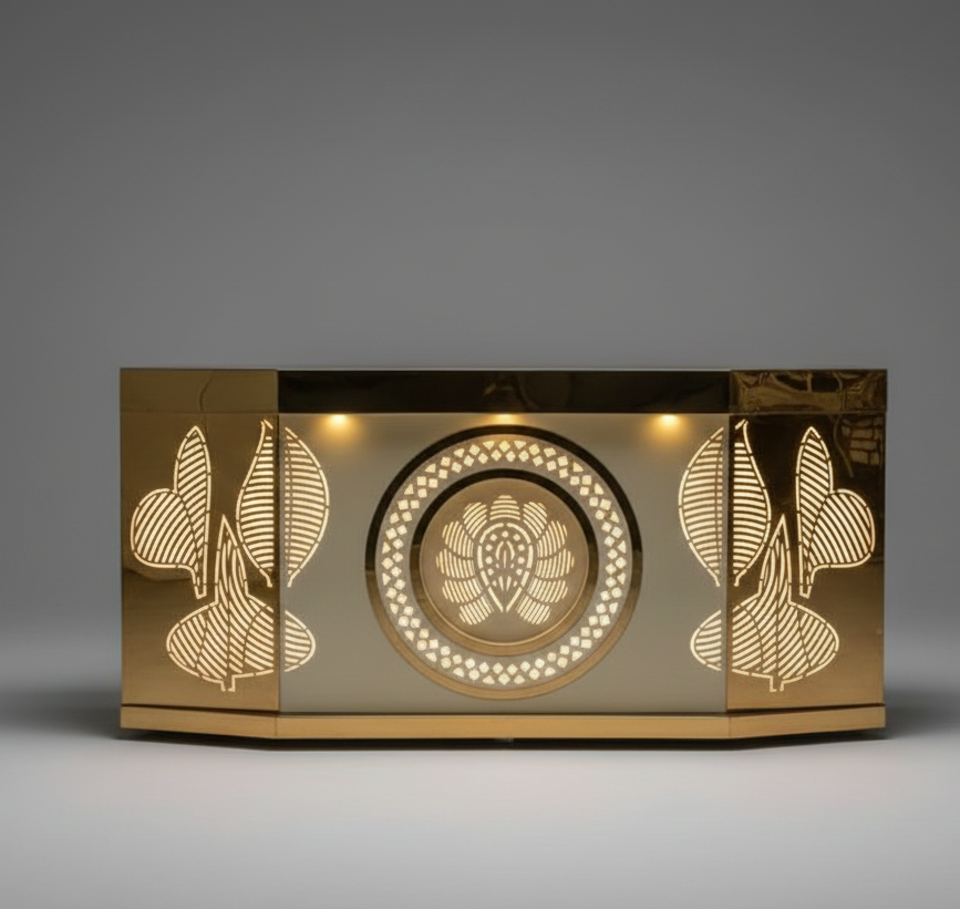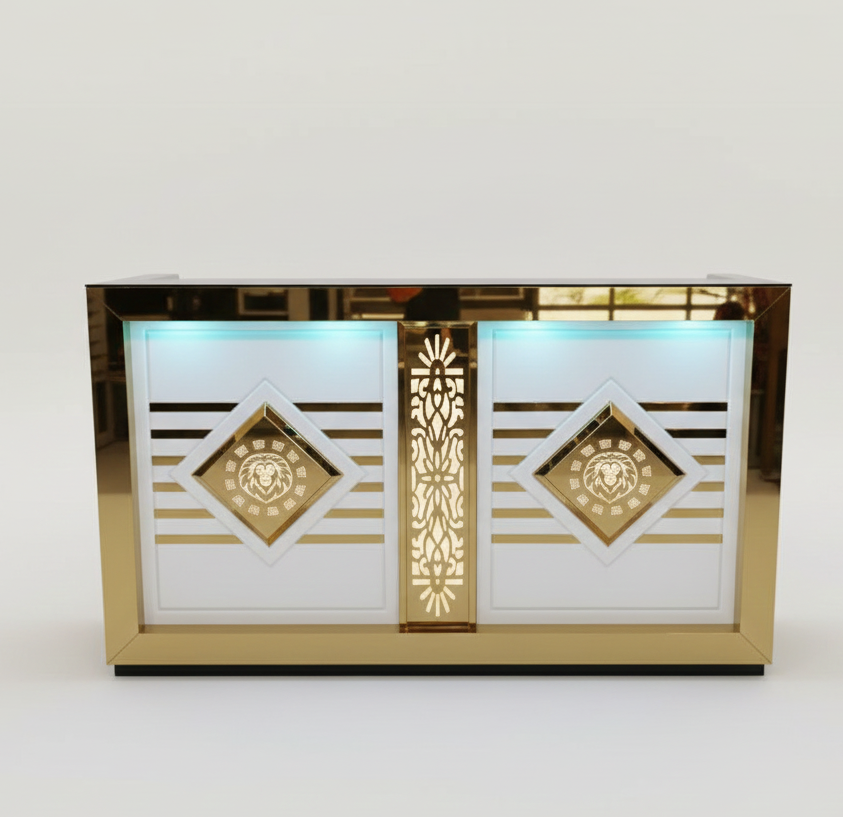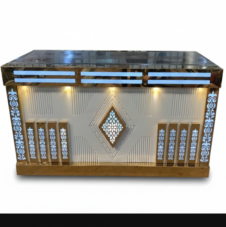 Mostrador de Recepción para Bodas, Nuevo, Fabricado en Acero Inoxidable con Acabado Dorado