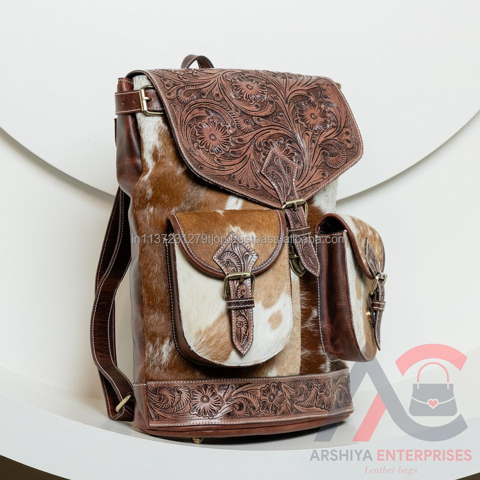 Product Name:Hair On Tooled Leather Hiking Backpack