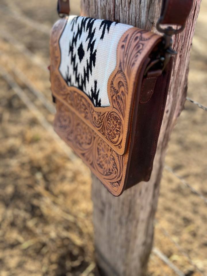Bolso bandolera de piel de vacuno genuina repujada