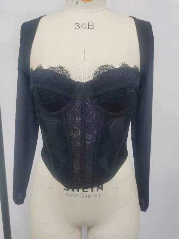 Nombre del producto:Top bustier de encaje bordado para mujer corsé de manga larga