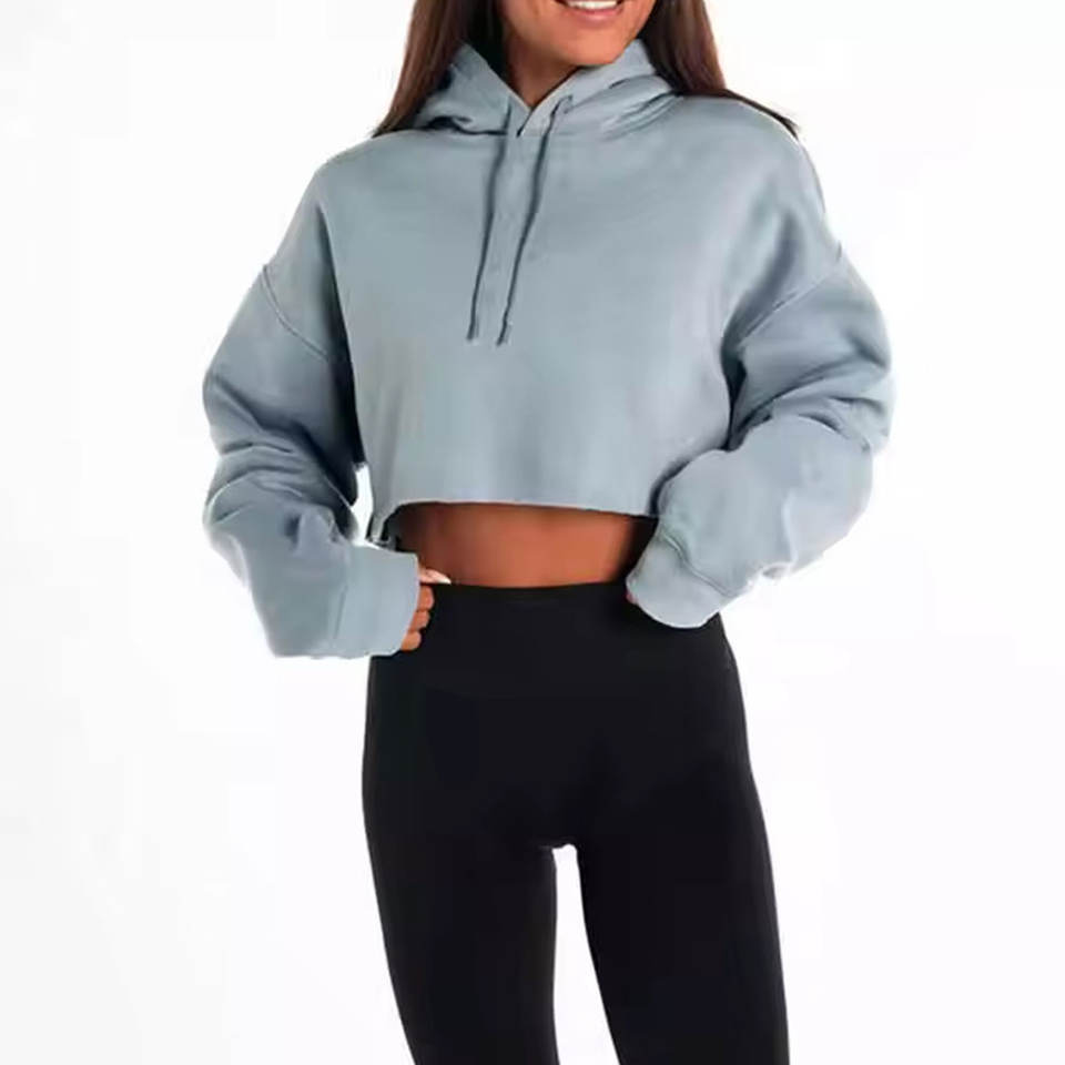 Nueva llegada al por mayor impresión de la letra suelta de alta calidad de las mujeres Crop Top Material mujeres Crop Top Sudadera con capucha en el precio barato