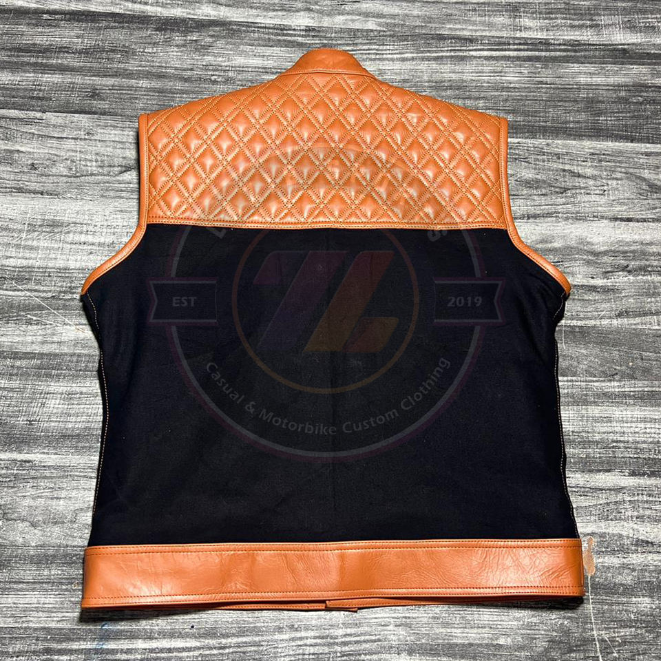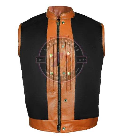 Product name:Stylish men's motorcycle leather and textile riding vest club style