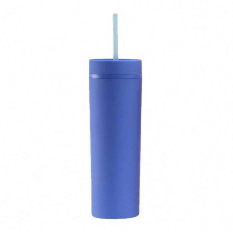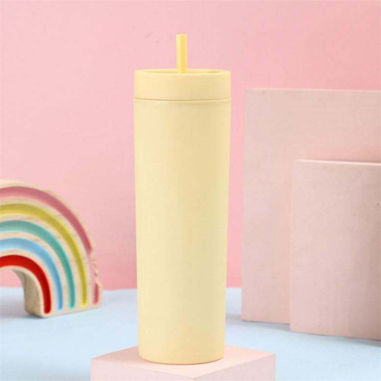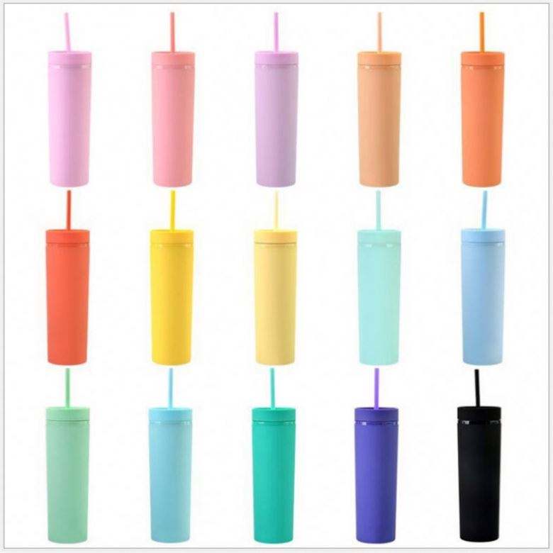 Vaso acrílico de color pastel mate de 16Oz, vasos delgados de plástico de doble pared con pajita, novedad