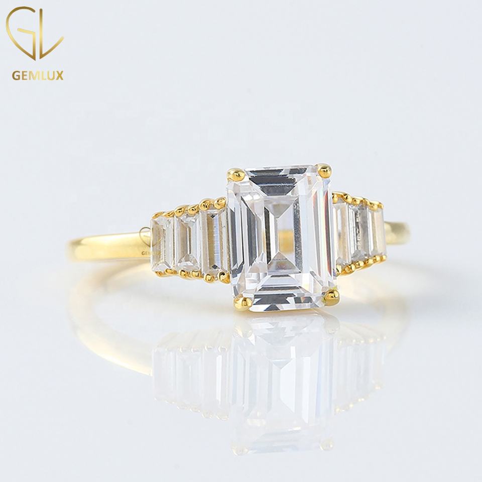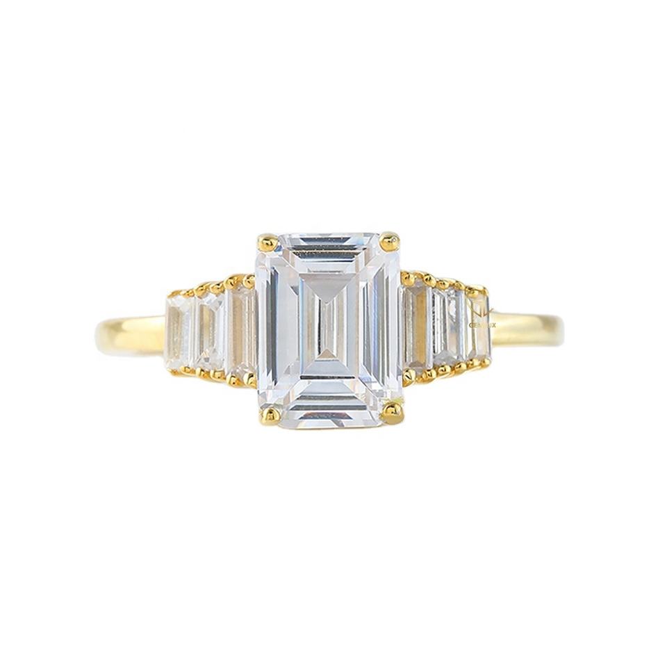 Nuevas llegadas 2CT Esmeralda corte laboratorio cultivado diamante 14K oro amarillo siete piedras anillo de compromiso para boda de mujer