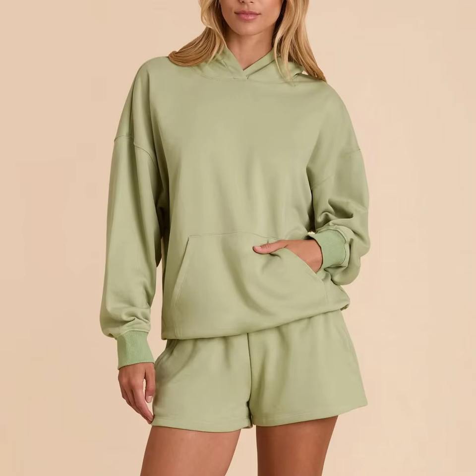 Novedades: Conjuntos de Ropa de Moda Personalizados para Mujer, Primavera, Sudadera con Capucha y Pantalones Cortos, Conjunto de Dos Piezas, Precio de Oferta, Transpirable, Personalizado