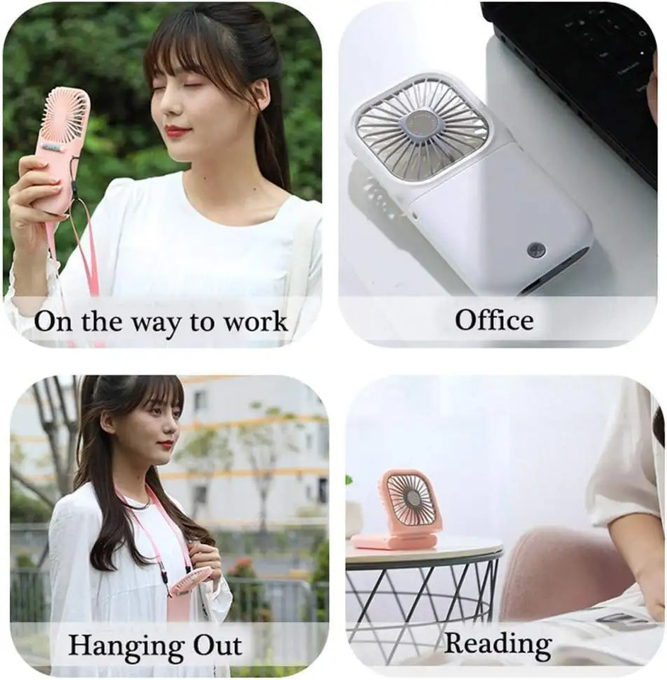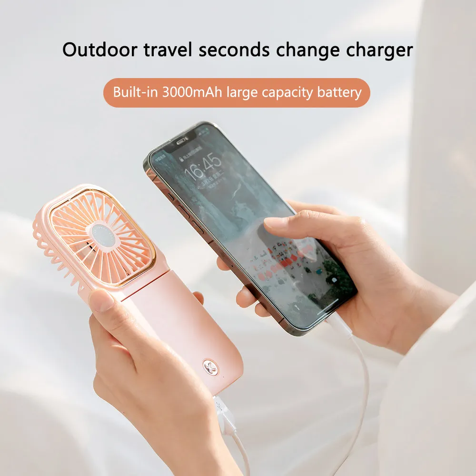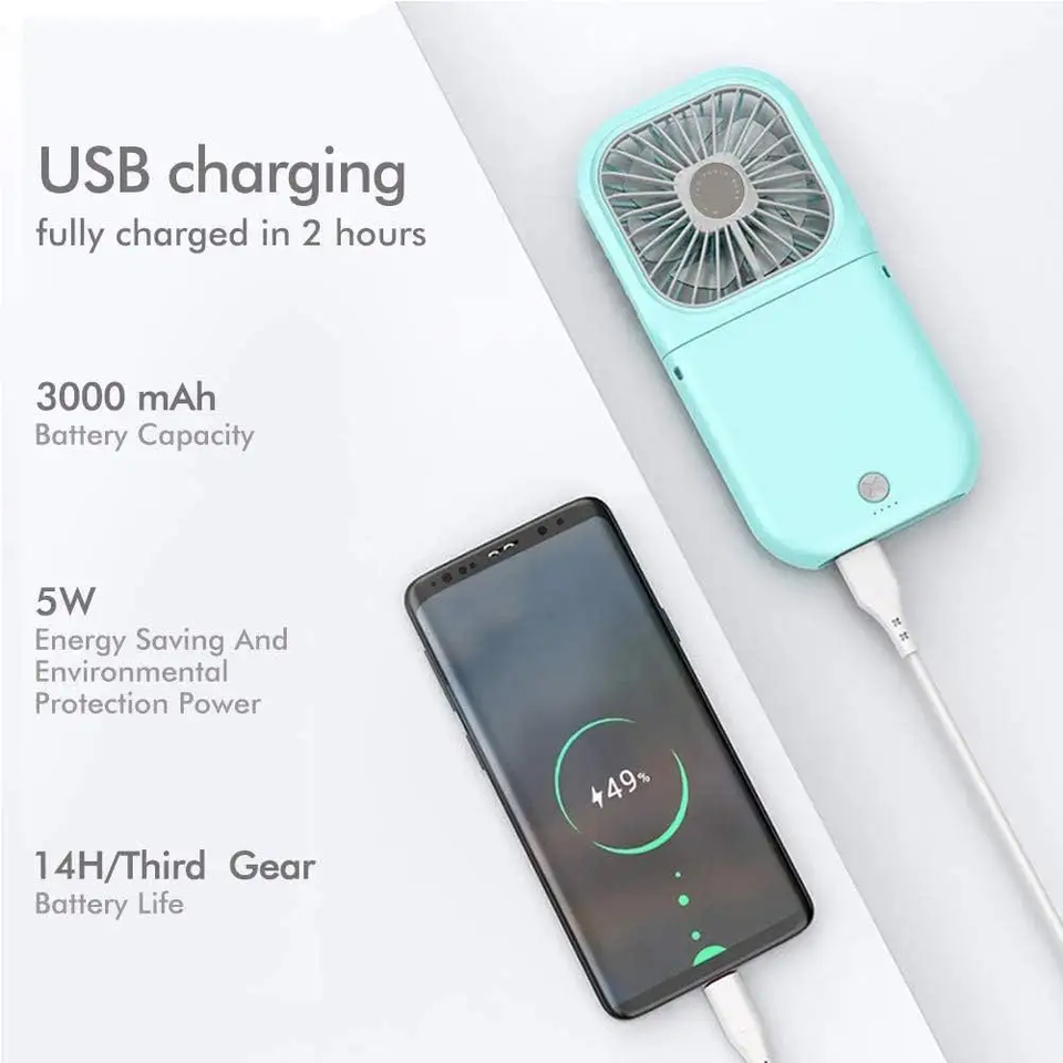 Nuevo Ventilador USB Portátil Recargable de 3000 mAh, Mini Ventilador de Mano y Mesa, Banco de Energía con Soporte para Teléfono, Ventilador de Collar Manos Libres