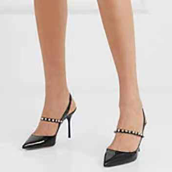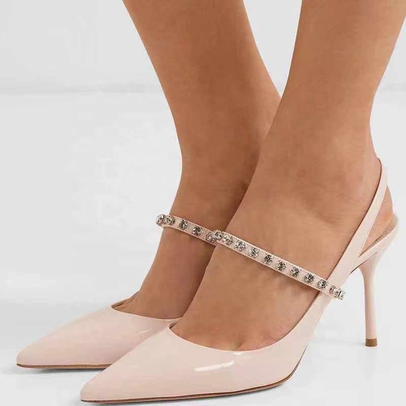 Nuevas llegadas: Zapatos de vestir de tacón fino con decoración de diamantes de imitación para mujer, de charol con correa de hebilla, punta puntiaguda, estilo slingback, para citas.