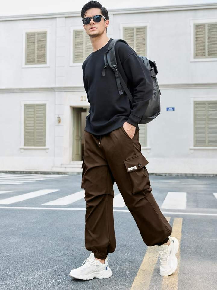 Pantalones Casuales de Felpa 100% Algodón Oxford para Hombre, Pantalones Deportivos Holgados de Pierna Ancha con Cintura Elástica y Cordón Ajustable
