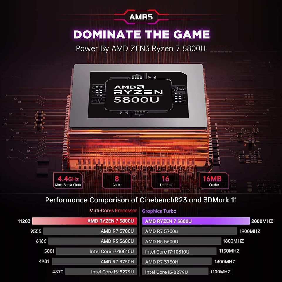 Nuevo llega AMR5 mini pc AMD R7 5800U Gaming Mini PC M.2 NVME 16GB RAM 512GB SSD WIFI 6 Mini computadora