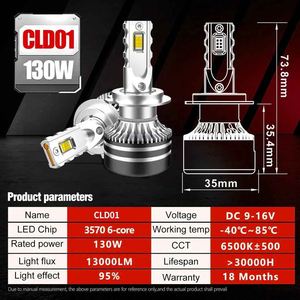 Nueva llegada CLD01 Auto reemplazo de bombilla delantera lámpara LED automóvil H1 H4 H7 H11 9005 9006 9012 5202 IP68 130W Led faro