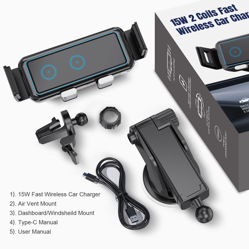 Nombre del artículo:Cargador Inalámbrico Rápido para Automóvil con Doble Bobina