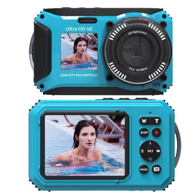 Nueva Cámara Subacuática Digital 4K con Doble Pantalla, 64MP, Zoom Digital 16X, Resistente al Agua, de Plástico, para Hacerlo Tú Mismo