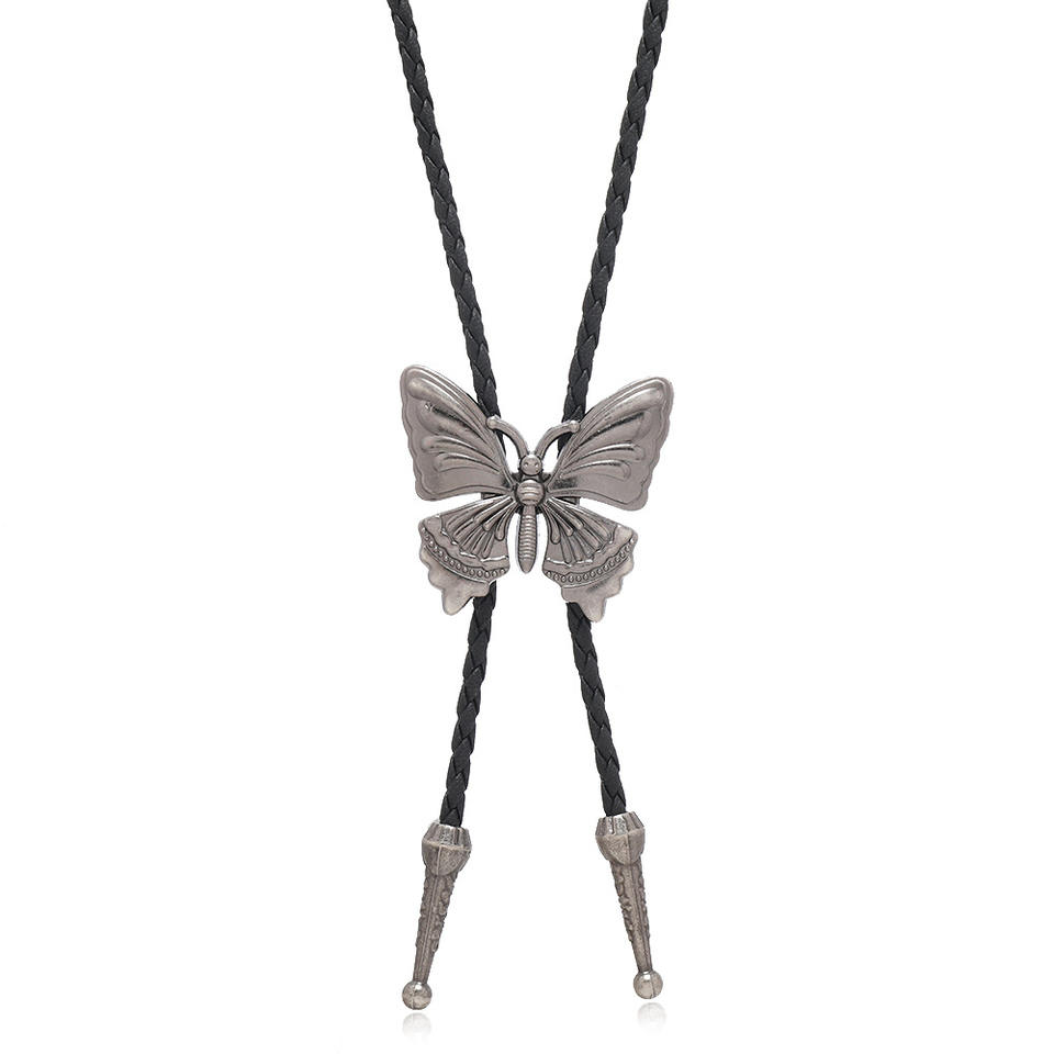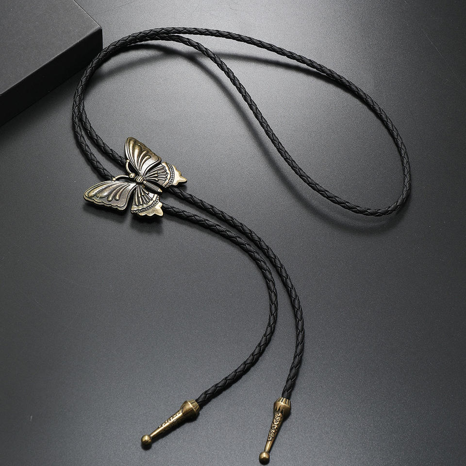 Recién llegado mariposa cuero Bolo Tie aleación PU Bolero collar Retro estilo Punk cuero collar largo para hombres mujeres