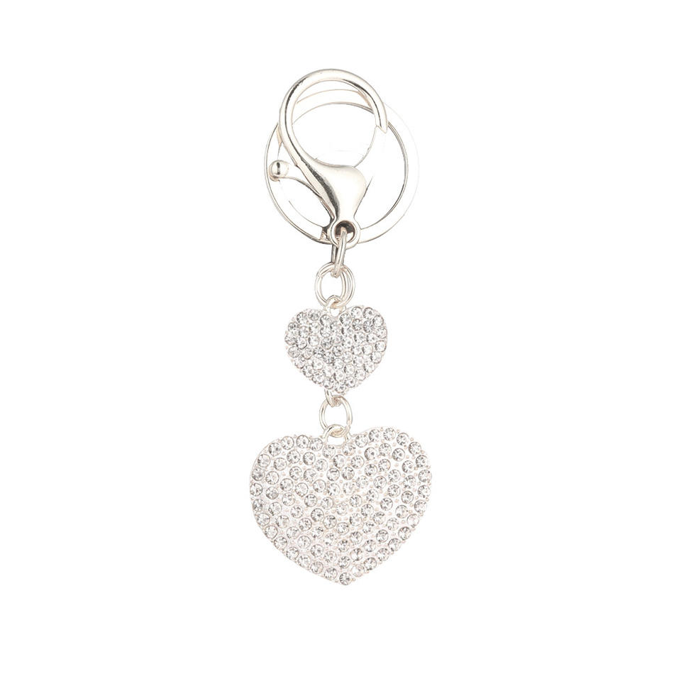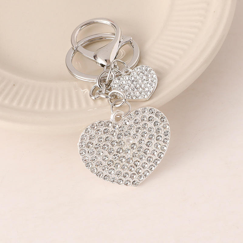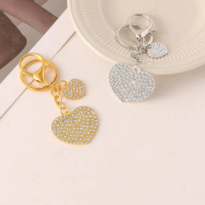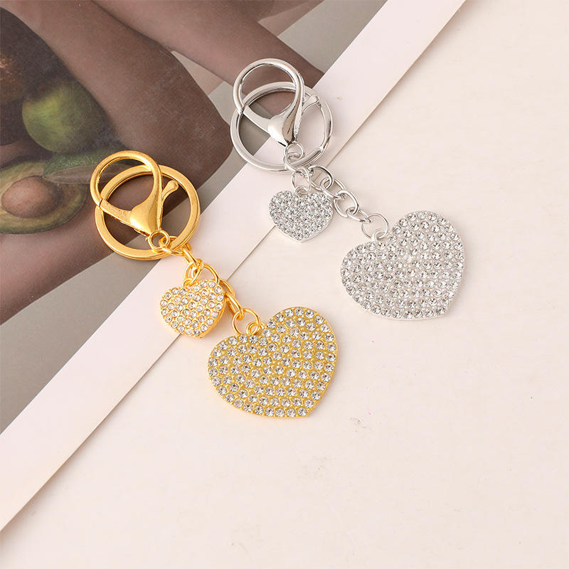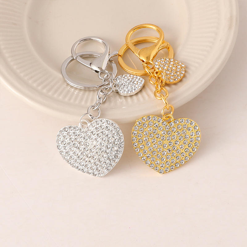 Nuevo Llavero de Coche con Forma de Corazón con Incrustaciones de Diamantes en Oro y Plata, Llavero de Bolso con Pedrería Completa, Colgante Creativo, Pequeños Regalos