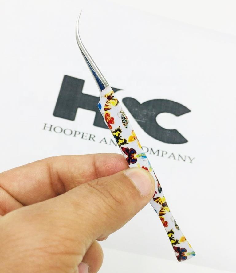 Nuevo diseño de arte, pinzas para pestañas, pinzas para extensión de pestañas curvas, acero inoxidable, puntiagudas, logotipo sostenible, pinzas curvas de visón