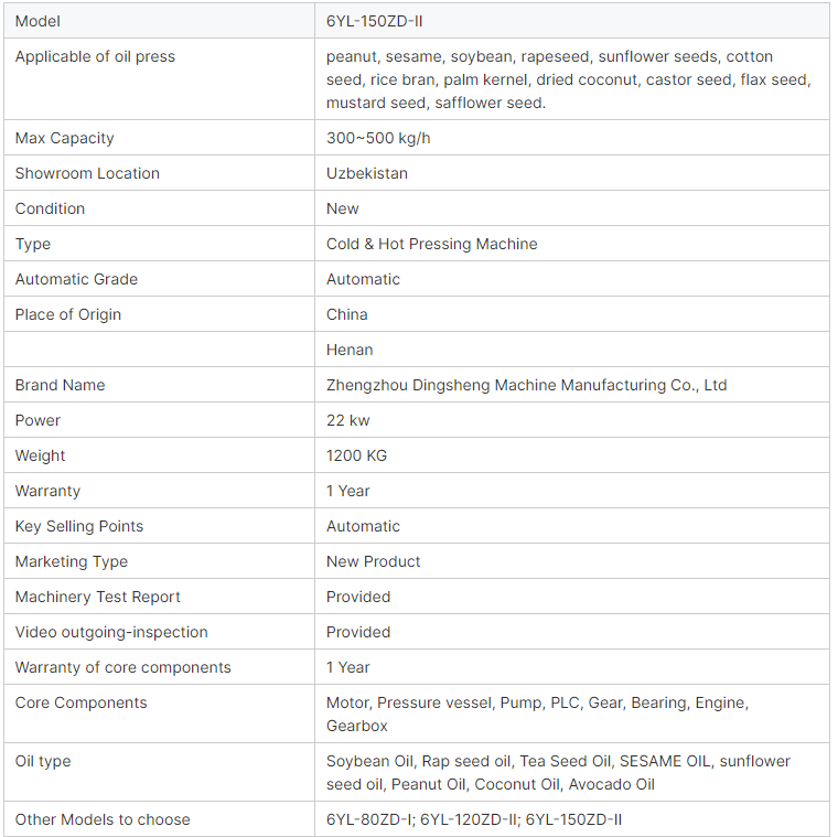 Nueva Máquina Automática Multiexpulsora de Aceite, Prensado en Frío y Caliente, para Palma y Soja, Capacidad 500kg/h, Marca Dingsheng, China, 380V, 5 Años de Garantía
