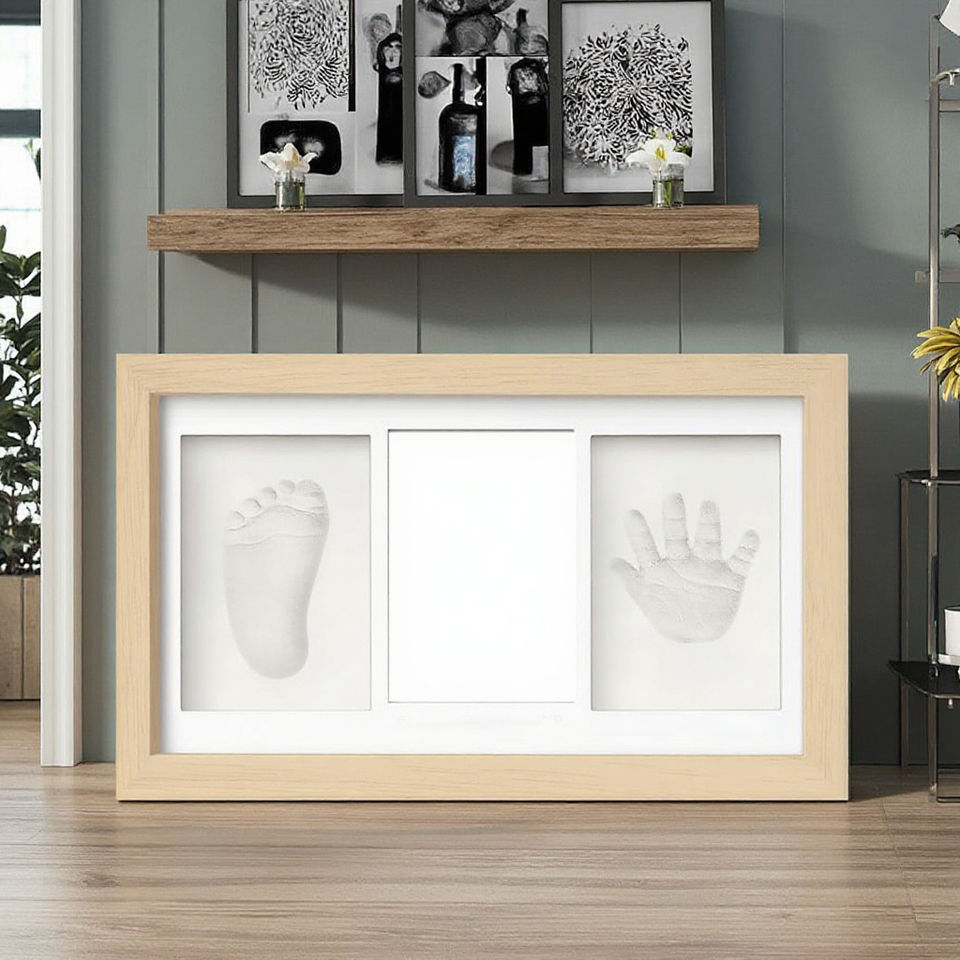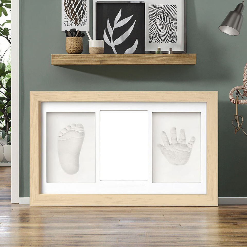 Nuevo Kit de estampado de pies a mano para bebé, marco de madera gris personalizado, formulario de registro de bautismo, nuevo regalo de madre para jardín de infantes recién nacido