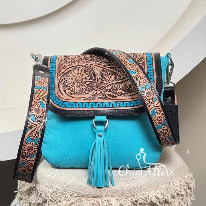Product name:Hand Tooled Genuine Leather Crossbody Bag