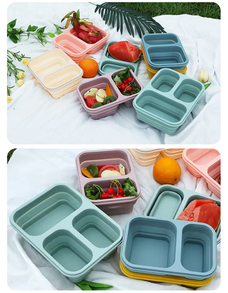 Nueva caja Bento, fiambrera plegable portátil para almacenamiento de alimentos, contenedor de alimentos a prueba de fugas, fiambrera plegable de silicona para microondas para estudiantes