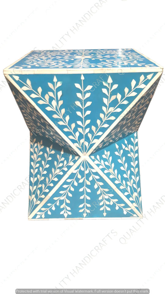 Nuevo mejor diseño de cama con incrustaciones de hueso, taburete de diseño a rayas en mesa auxiliar con incrustaciones de hueso negro de la India por Quality Handicrafts