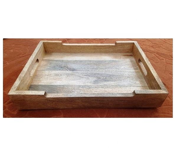 Bandeja de Servir de Madera de Mango Natural Hecha a Mano con el Mejor Diseño, 35x23x3 CM, Forma Personalizable para el Hogar, Cocina, Hotel, Restaurante