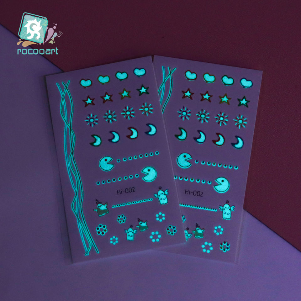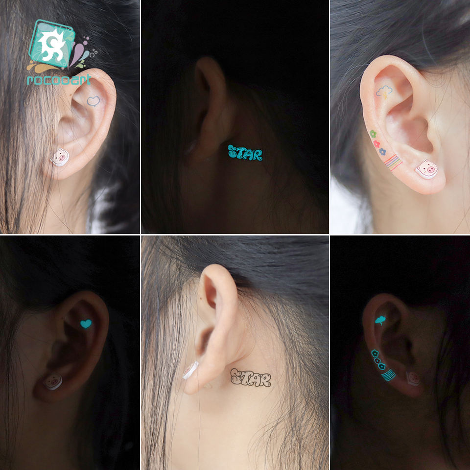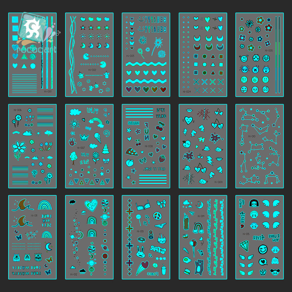 Pegatina de tatuaje luminoso azul, Mini Luna pequeña mixta brillante en la oscuridad, tatuaje temporal impermeable