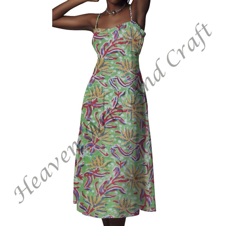 Número de Modelo:Hand Block Printed Spaghetti Strap Dress