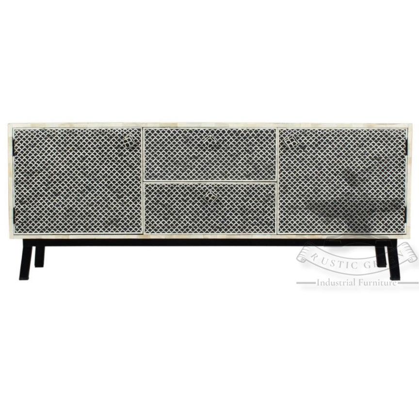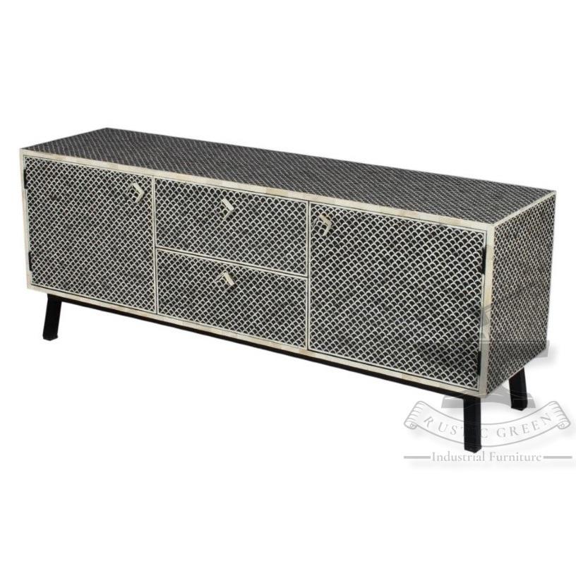 Soporte de unidad de TV europeo moderno y personalizado de mediados de siglo, nuevos muebles con incrustaciones de hueso antiguo para comedor y sala de estar, tamaños estándar