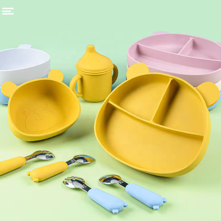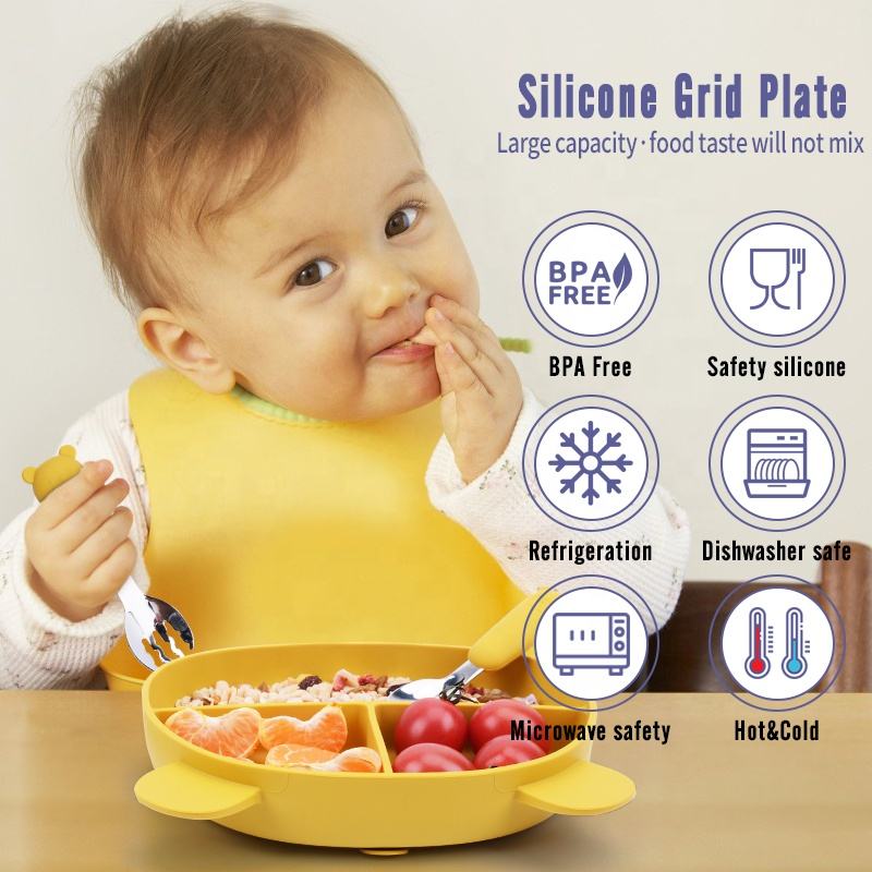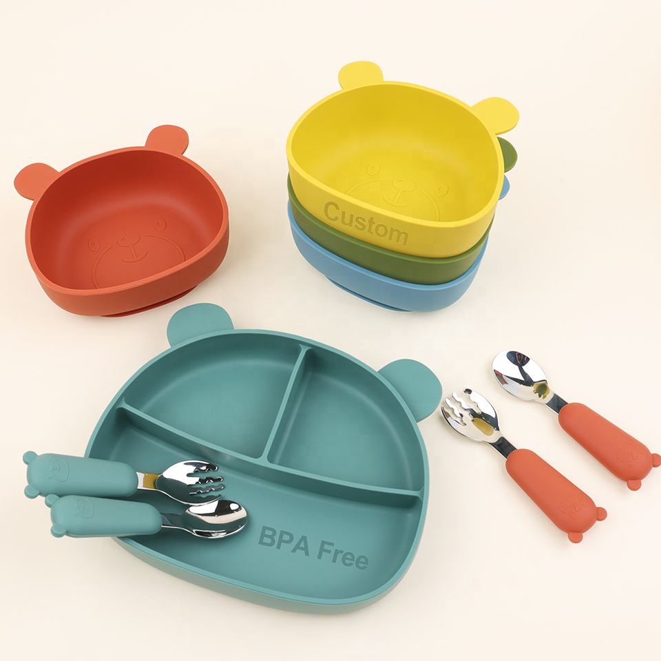 Juego de regalo para bebé recién nacido, vajilla de destete para niños pequeños sin Bpa personalizada, plato dividido de succión de silicona, juego de platos de alimentación de bebé de silicona