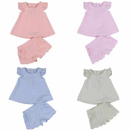 Nuevo Conjunto de Ropa para Niñas, Estilo Boutique, Verano, Color Liso, con Volantes, Chaleco sin Mangas, Pantalones Cortos